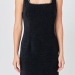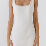 Be sexy and chic in this Chain Trimmed Square Neckline Mini Dress. The sleeveless design and side zipper make this dress easy to slip on. The square neckline and chain trim detail adds a modern yet elegant touch. Buy this mini dress now for a unique look that will turn heads.