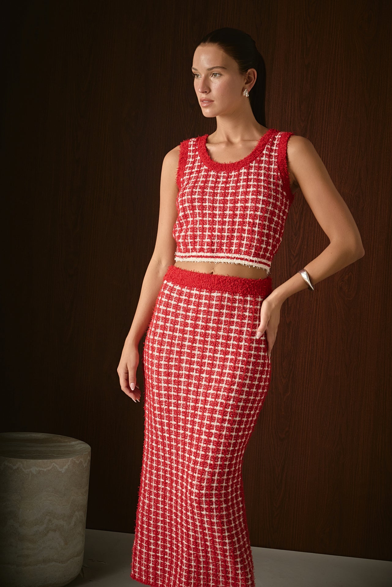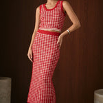 Unleash your inner fashionista with our Check Maxi Skirt. This versatile skirt features a trendy check print that adds a touch of sophistication to any outfit. Made from a comfortable knit fabric, it effortlessly drapes over your curves. The elastic band ensures a perfect fit every time. With a fitted silhouette, this skirt flatters your figure and can be dressed up or down for any occasion. Whether you're running errands or headed to a night out, our Check Maxi Skirt is the perfect choice. Shop now and make a statement in style!