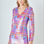 Look your best for any special occasion in this Check Pattern Sequins Dress! This dress features a V neckline mini length and long sleeves. It has a dazzling sequined check pattern design and is also completed with side invisible zipper closure. This dress ensures you make a lasting impression for any event! Perfect to couple it with your favorite heels and jewelry pieces for a beautiful look.