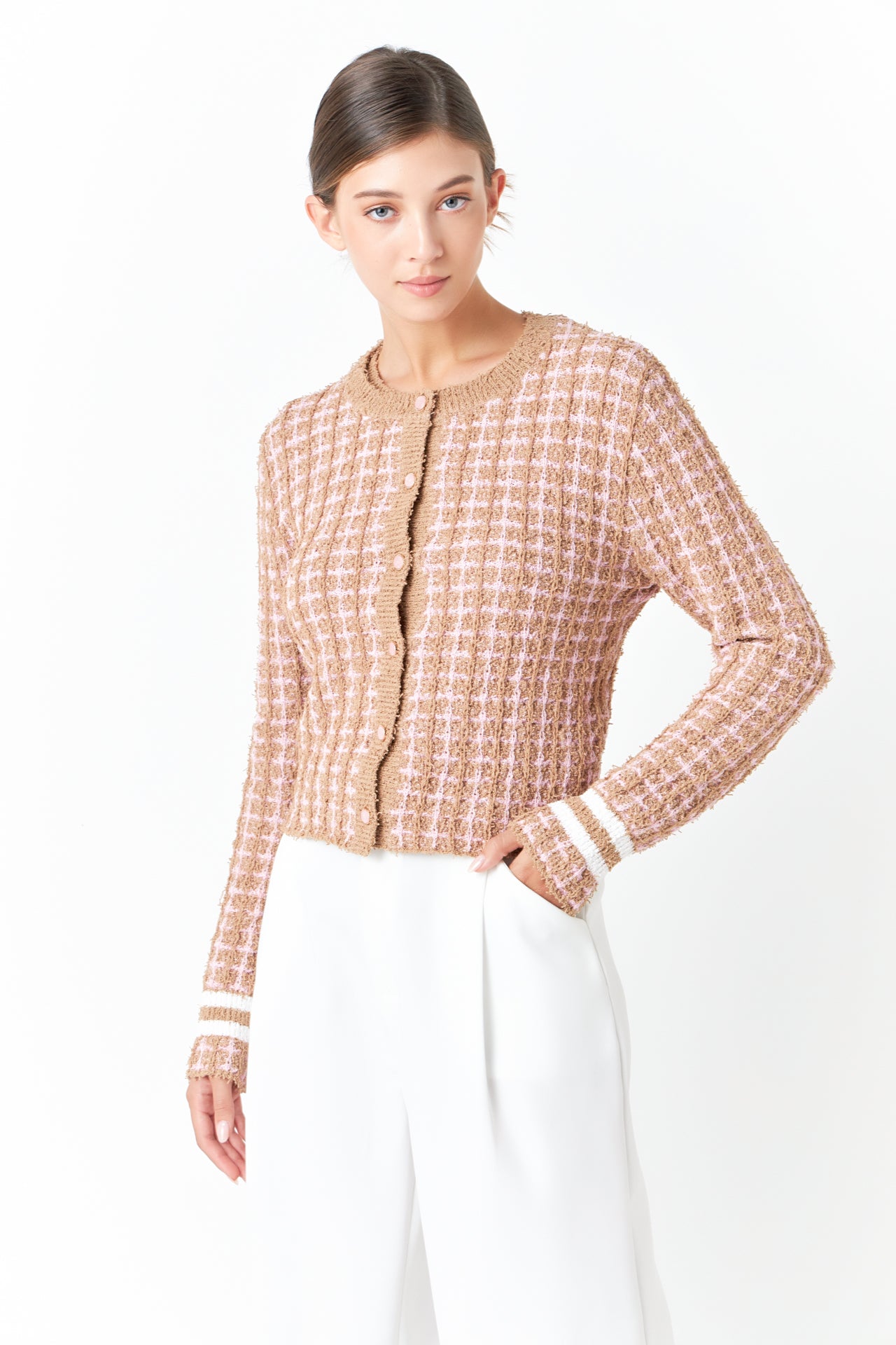 Check Sweater Cardigan