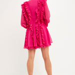 Long-Sleeve Ruffle Mini Dress