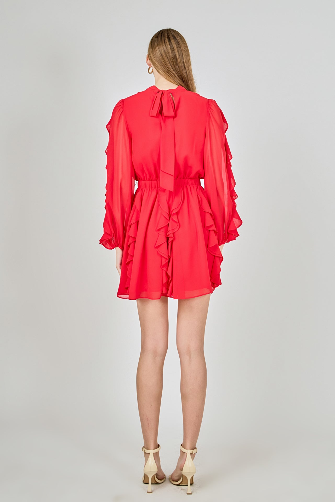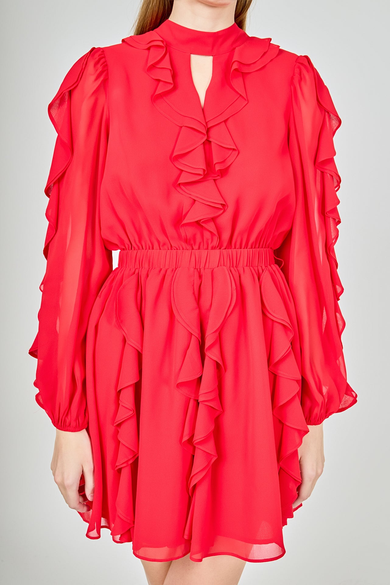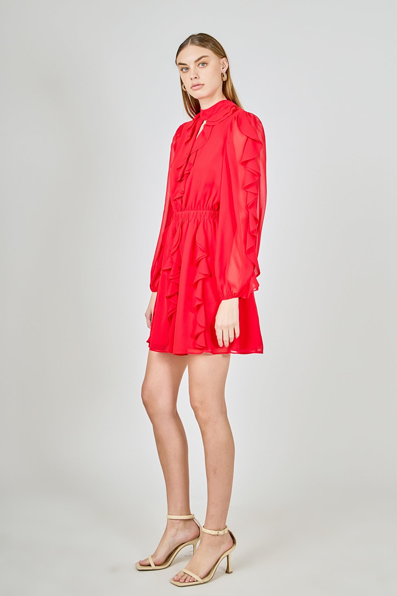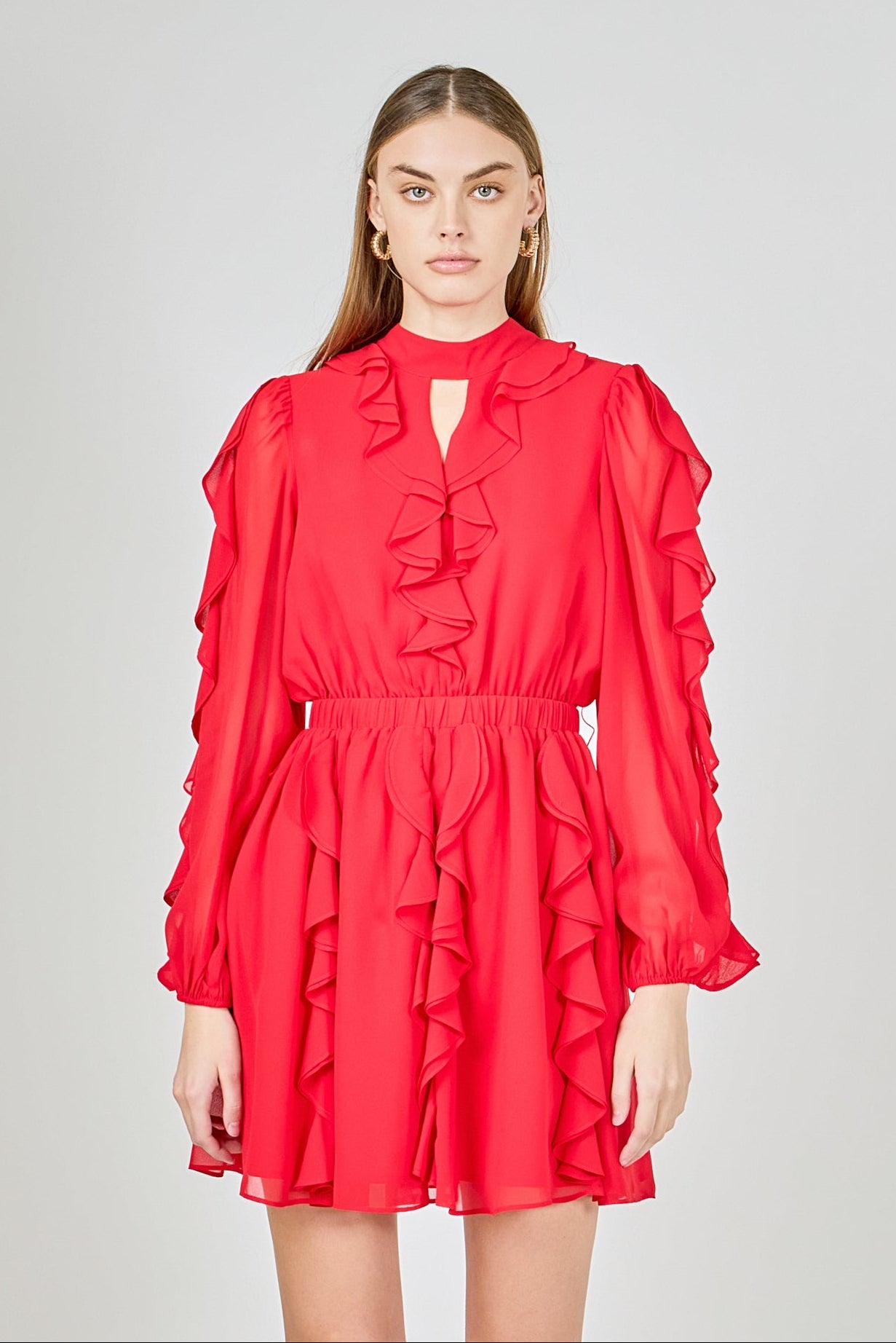 This gorgeous Chiffon Ruffled V Mini Dress is perfect for any occasion. The lightweight airy chiffon fabric ensures a comfortable fit and allows you to move with ease. The mini length and ruffled detail plus neckband give it the perfect feminine touch. Added features include breathability and easy-care so you can now look and feel amazing with no stress. Show off your style with this unique and gorgeous dress!
