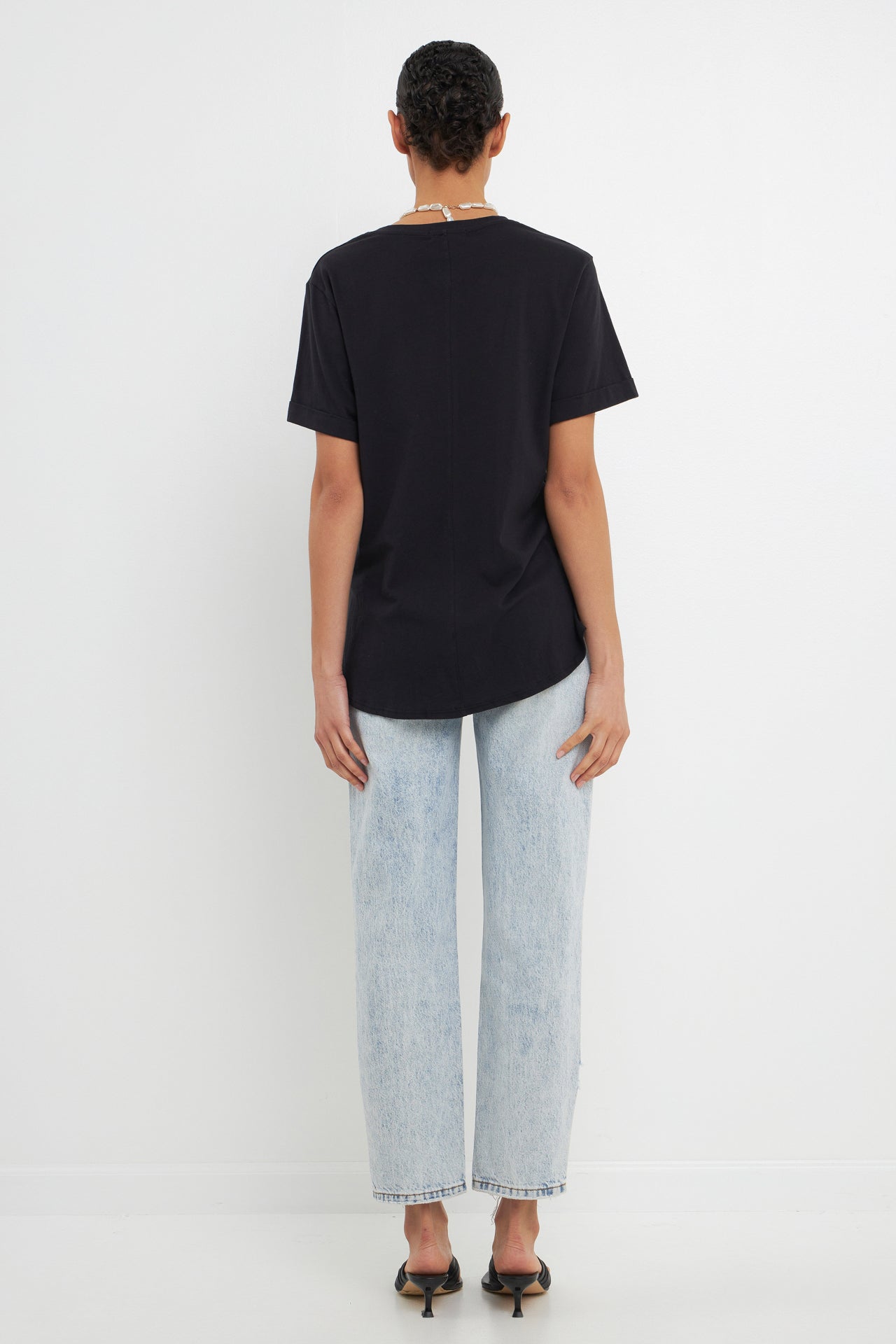 A must-have in any girl's wardrobe. A tee that you can wear on any day with anything. With a classic and comfortable fit this boyfriend tee is a key piece for your everyday look. With its versatile style this top can easily be dressed up or down.