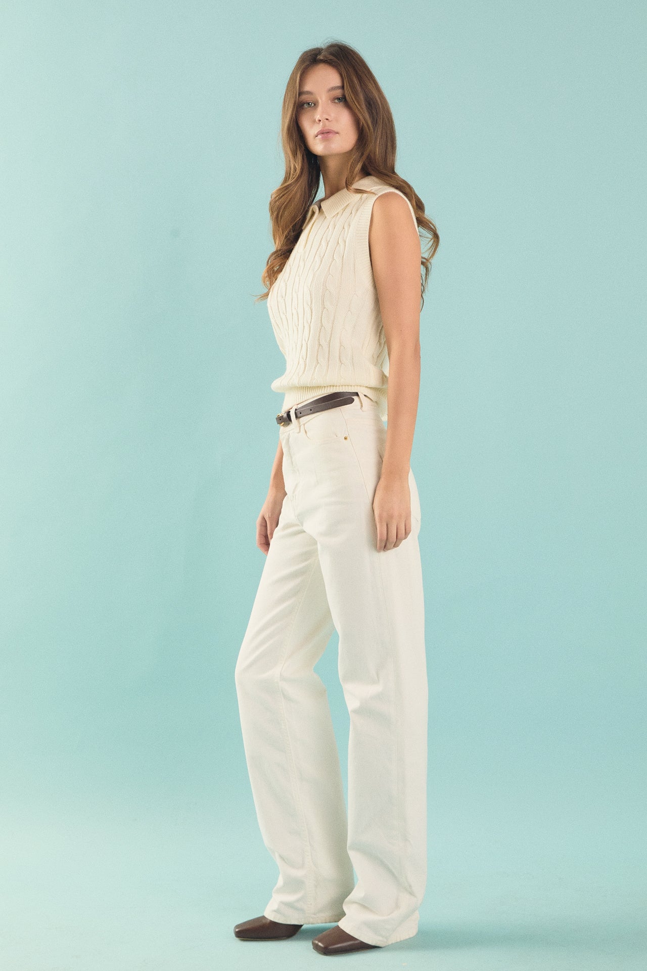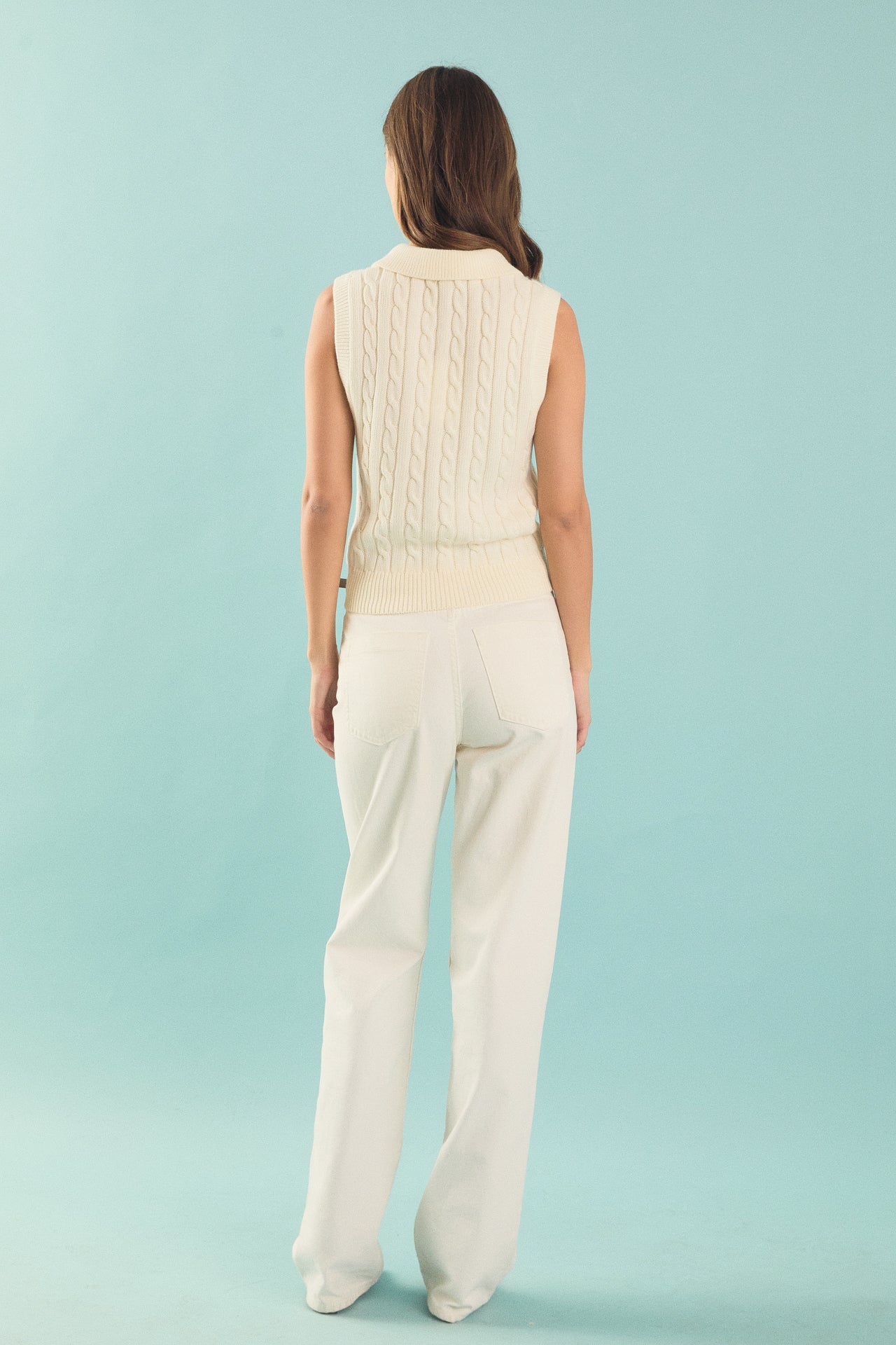 Chic and stylish, our Collar Cable Knit Sleeveless Vest is the perfect addition to your wardrobe. Made from high-quality cable knit fabric, this vest is both cozy and fashionable. The collar adds a touch of sophistication, while the sleeveless design allows for easy layering. The vest is perfect for both casual and formal occasions, making it a versatile piece in your collection. Enhance your look with this classic and timeless vest that will keep you warm and stylish. Get yours today and make a fashion statement with our must-have vest.