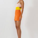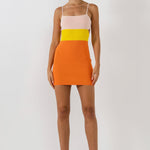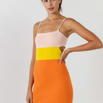 This dress is the perfect way to show off your trendsetting style. The colors are perfect for the season, and the side cut out detail makes it a must-have piece. Whether you're headed to work or a party, this mini dress is sure to turn heads.