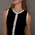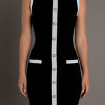 Looking for a dress that is chic and stylish? This color block knit dress is the perfect choice! Featuring a timeless round neckline and a sleeveless design, this dress is both flattering and comfortable. The top front button closure adds a touch of sophistication to the overall look. Made with high-quality materials, this dress is perfect for any occasion. The trendy color block pattern adds a modern twist to this classic design. Elevate your wardrobe with this must-have dress. Search no more, add this color block knit dress to your collection today!