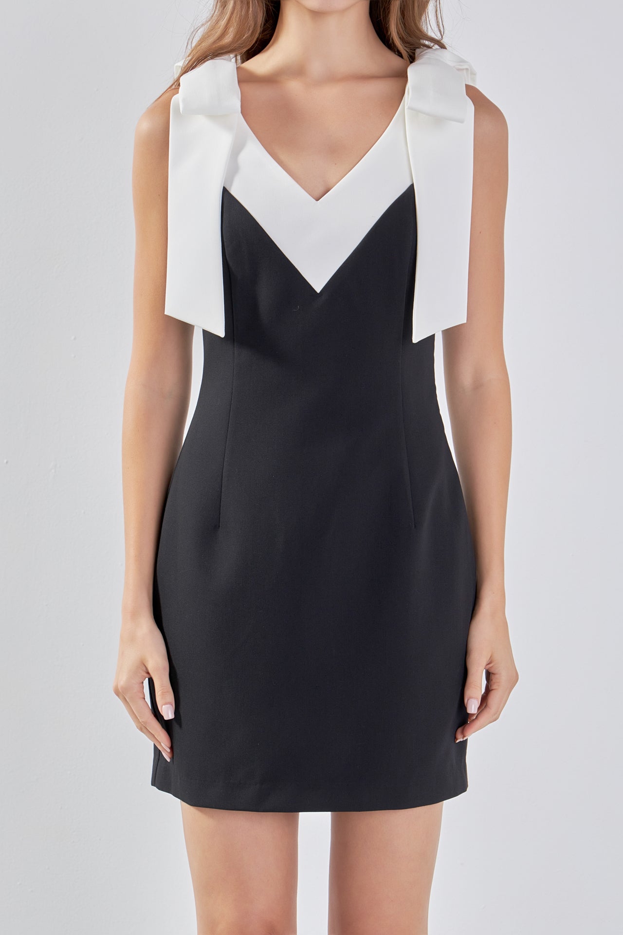 Add a pop of color to your wardrobe with our Color Block Mini Dress. The vibrant color block detail draws the eye while the flattering V neckline and sleeveless design keep you feeling cool and confident. The playful bow straps add a fun touch to this versatile dress perfect for any occasion. Made with high-quality fabric it's comfortable to wear and easy to care for. Stand out from the crowd and make a statement with this must-have dress. Shop now and elevate your style game with our Color Block Mini Dress.