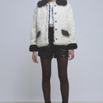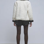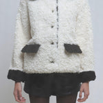 Time to cozy up in style! This faux Sherpa jacket is the perfect way to keep warm while looking fashionable. The trendy color block design and heart-shaped buttons make this jacket a favorite among our customers.