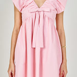 Introducing our must-have Sydney Combo Bow Mini Dress! This dress is the ultimate combination of chic and girly, featuring a statement front bow and a flattering V neckline. The mini length adds a flirty touch while the blouson sleeves provide a flowy, feminine silhouette. Perfect for any occasion, this dress is sure to turn heads. Made from high-quality materials, it offers both style and comfort. Whether you're dressing up for a night out or keeping it casual, our Sydney Combo Bow Mini Dress is a versatile addition to your wardrobe. Don't miss out - grab yours now!