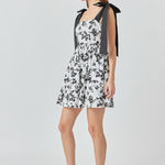 Attention this mini dress is sure to turn heads. With its floral print and shoulder bow tie this fit and flare mini-length dress will showcase your unique style. Walk into any party with confidence in this stunning look. Perfect for a day and night of fun.