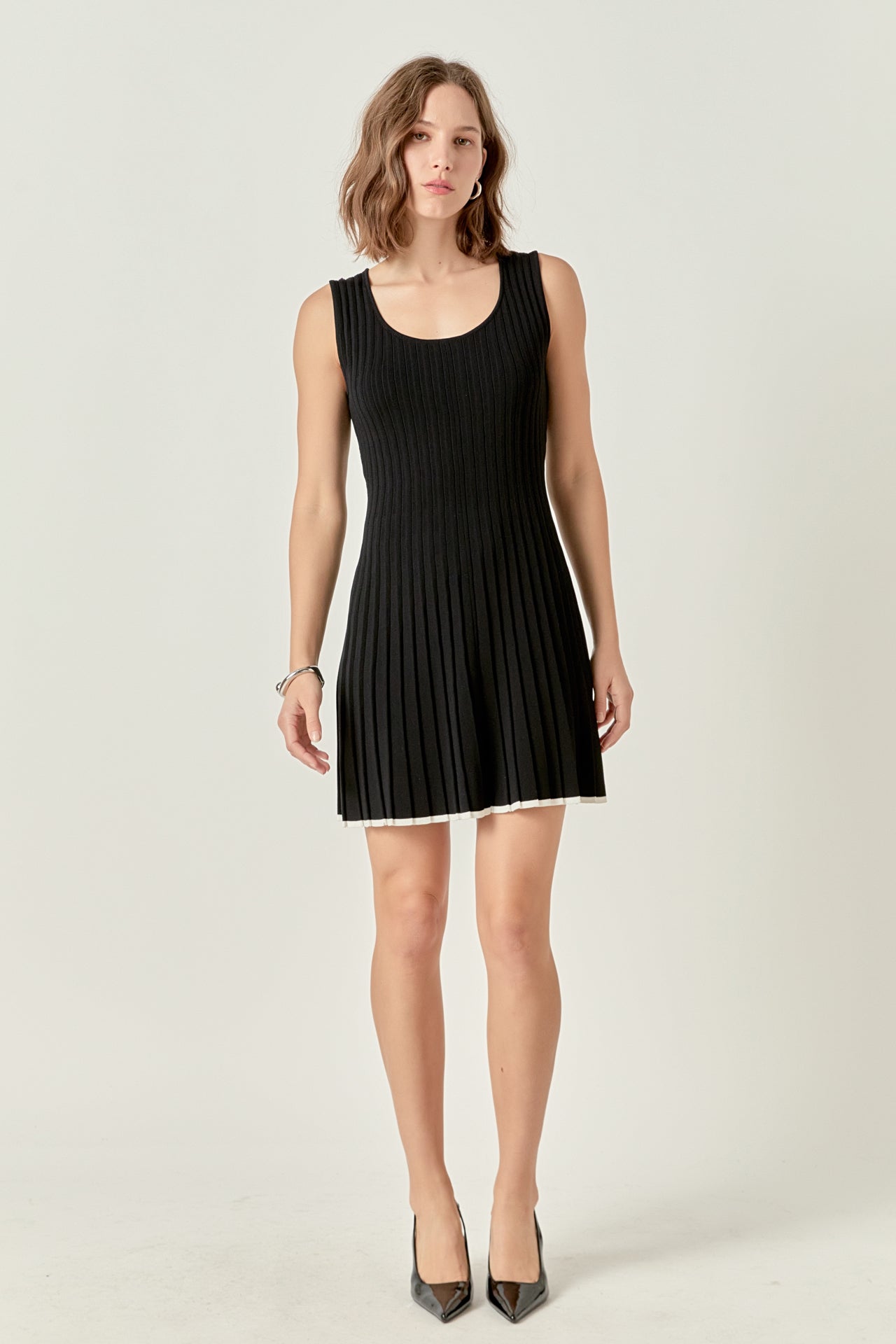 Turn heads in our Sloane Contrast Ribbed Knit Mini Dress, perfect for any occasion. The soft knit fabric flatters your figure while keeping you comfortable all day long. With a mini length and sleeveless design, this dress is perfect for showcasing your legs and keeping you cool in warmer weather. The contrast ribbed detailing adds a touch of texture and the round neckline gives a classic touch. Elevate your wardrobe with this versatile dress that can be dressed up or down. Shop now for the perfect combination of style and comfort.