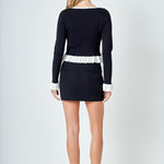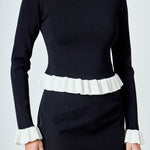 Introducing our Contrast Ruffle Knit Top, the perfect addition to your winter wardrobe. Soft to the touch and designed with delicate ruffle accents along the sleeves, this knit adds a subtle feminine flair to your cold-weather wardrobe. The dynamic color contrast brings just the right amount of interest, making it easy to dress up or down. Whether paired with tailored pants for the office or jeans for weekend warmth, this top is a stylish staple for the season.