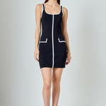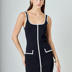 Unleash your inner fashionista with our Contrast Square Neck Mini Knit Dress! This sleek and trendy dress features a mini length that flatters your legs, while the sleeveless design keeps you cool and comfortable. The square neck adds a touch of sophistication to your look. Made with high-quality knit fabric, it offers a snug and comfortable fit that you'll love. With its unique contrast color design, this dress is sure to make you stand out from the crowd. Get ready to turn heads and be the envy of everyone with our must-have knit dress!
