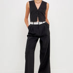 Add modernity to your wardrobe with our Contrast Waist Pants. Featuring an elongated length and wide fit these pants are complete with a contrast waistband for a unique touch. Crafted for comfort and style these pants will take you from work to play.