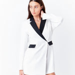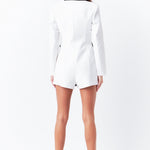 Elevate your style game with our Contrasted Blazer Romper. This versatile piece combines the best of both worlds - the comfort of a romper and the sophistication of a blazer construction. Crafted to flatter your body with its slim fit and long sleeves, this romper is perfect for any occasion. Whether you're headed to a brunch or a night out, this romper will effortlessly take you from day to night. Featuring a unique blend of style and comfort, it is a must-have in your wardrobe. Shop now and make a statement with our Contrasted Blazer Romper.