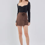 The Corsage Mini Skirt is perfect for any occasion. Featuring a mini length this skirt is wrapped in front with a tie-up corsage and features a side zipper for fast and convenient wear. Its unique selling point is its comfort and style. This fashionable and comfortable skirt will be sure to turn heads. Made with quality fabric this skirt is sure to last you a long time. Get ready to shine in the Corsage Mini Skirt!