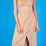 Upgrade your wardrobe with our Corset Bust Maxi Dress! Designed for maximum elegance, this dress boasts a flattering maxi length that will make you stand out from the rest. Perfect for any occasion, the shoulder straps lend a comfortable fit while the shirring bust accentuates your curves. The front slit adds a touch of sophistication to this already glamorous piece. Whether you're attending a formal event or a casual outing, our Corset Bust Maxi Dress is sure to turn heads. Don't wait any longer, get yours now and be the envy of every fashionista!