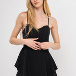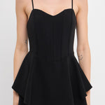 Ready to take on anything that comes your way, this Corset Bustier Ruffled Romper will have you feeling your best. The stretch corset bustier top is designed to hug your curves in all the right places while the ruffled bottom adds a touch of playfulness. With adjustable spaghetti straps and an invisible side zipper, this romper is sure to become a fast favorite in your wardrobe.