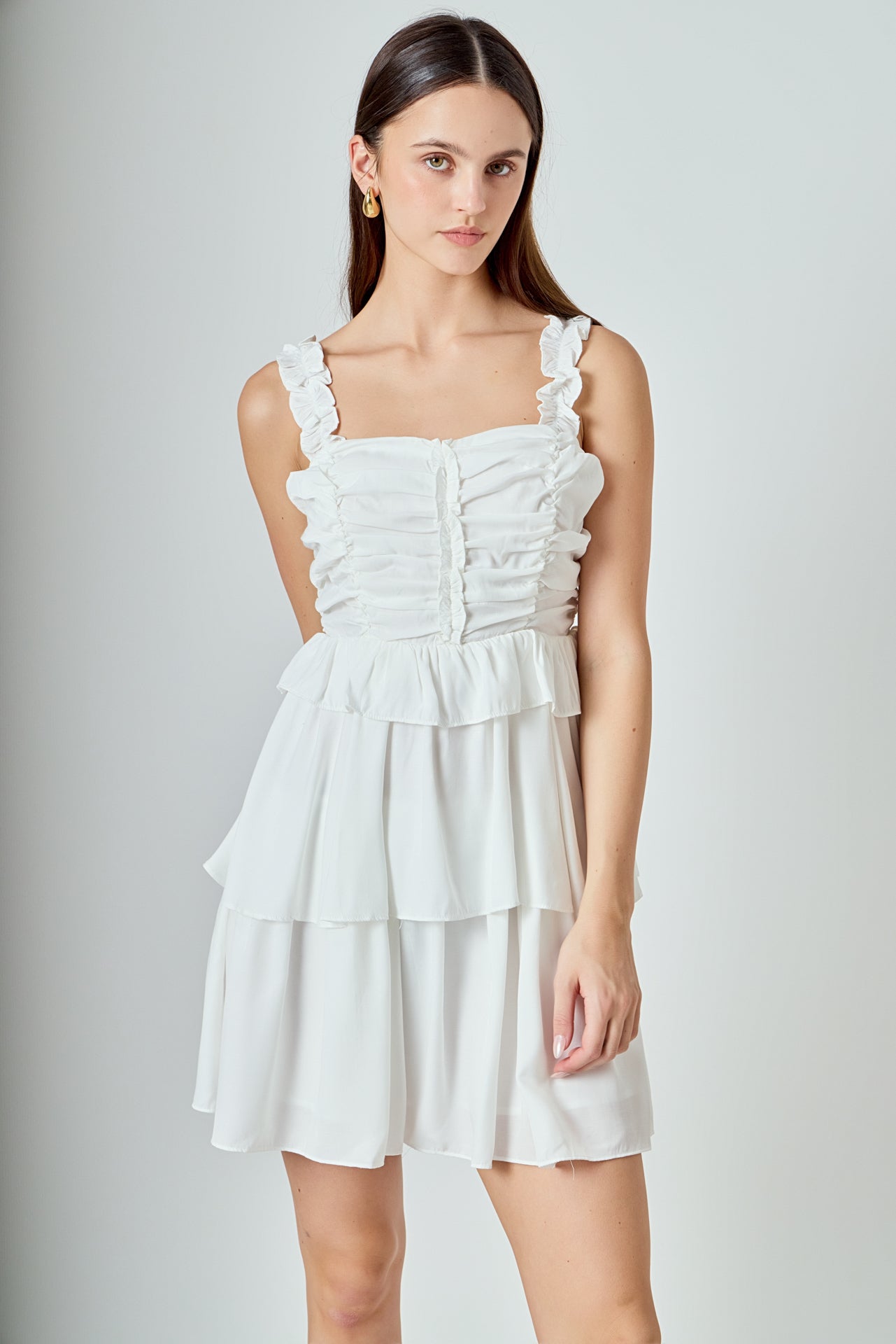 The perfect party dress for your next night out. This stunning corset mini dress is sure to turn heads. With its pretty ruffles and alluring side zipper, it's perfect for making a statement. Whether you're dressing up or dressing down, this versatile piece is a must-have in every girl's wardrobe.