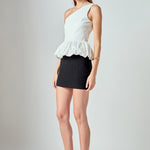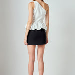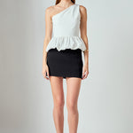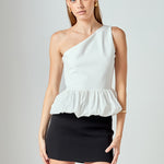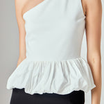 The Cotton Blouson Mixed Media Top brings a fun twist to an everyday staple. Its soft, breathable fabric is paired with an asymmetric one-shoulder neckline and a relaxed blouson silhouette for a look that's both effortless yet playful. A hidden side zipper ensures a clean, tailored fit, while its versatile design moves easily from casual days to elevated evenings.