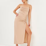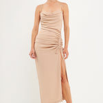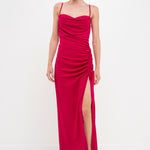 This Cowl Neck Maxi Dress is sexy, yet elegant. The sweetheart neckline and side ruching adds a touch of elegance and femininity that make this maxi dress a must-have item. The best part? It has adjustable spaghetti straps and adjustable ruching so you can make it fit like a glove. For nights out, pair it with your favorite for an eye-catching outfit!