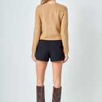 Introducing the ultimate fall essential - our Crewneck Button Down Knit Top! Made from a cozy blend of soft materials, this top is perfect for cooler weather. With a classic button-down design and comfortable crewneck, it's a versatile piece that can be dressed up or down. The knit texture adds a touch of dimension, while the button details on the front and sleeves elevate the look. Pair with your favorite jeans for a casual daytime outfit or dress it up with a skirt and boots for a chic evening look. Shop now and stay stylishly cozy all season long!