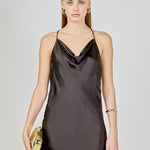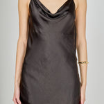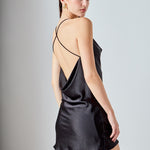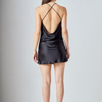We're obsessing over this Cowl Neck Mini Dress with X-Back! With a stylish cowl neckline and an cross back design, this mini dress is perfect for any event. Unlined and mini length, this dress is sure to turn heads. Add some statement earrings and heels to complete the look.