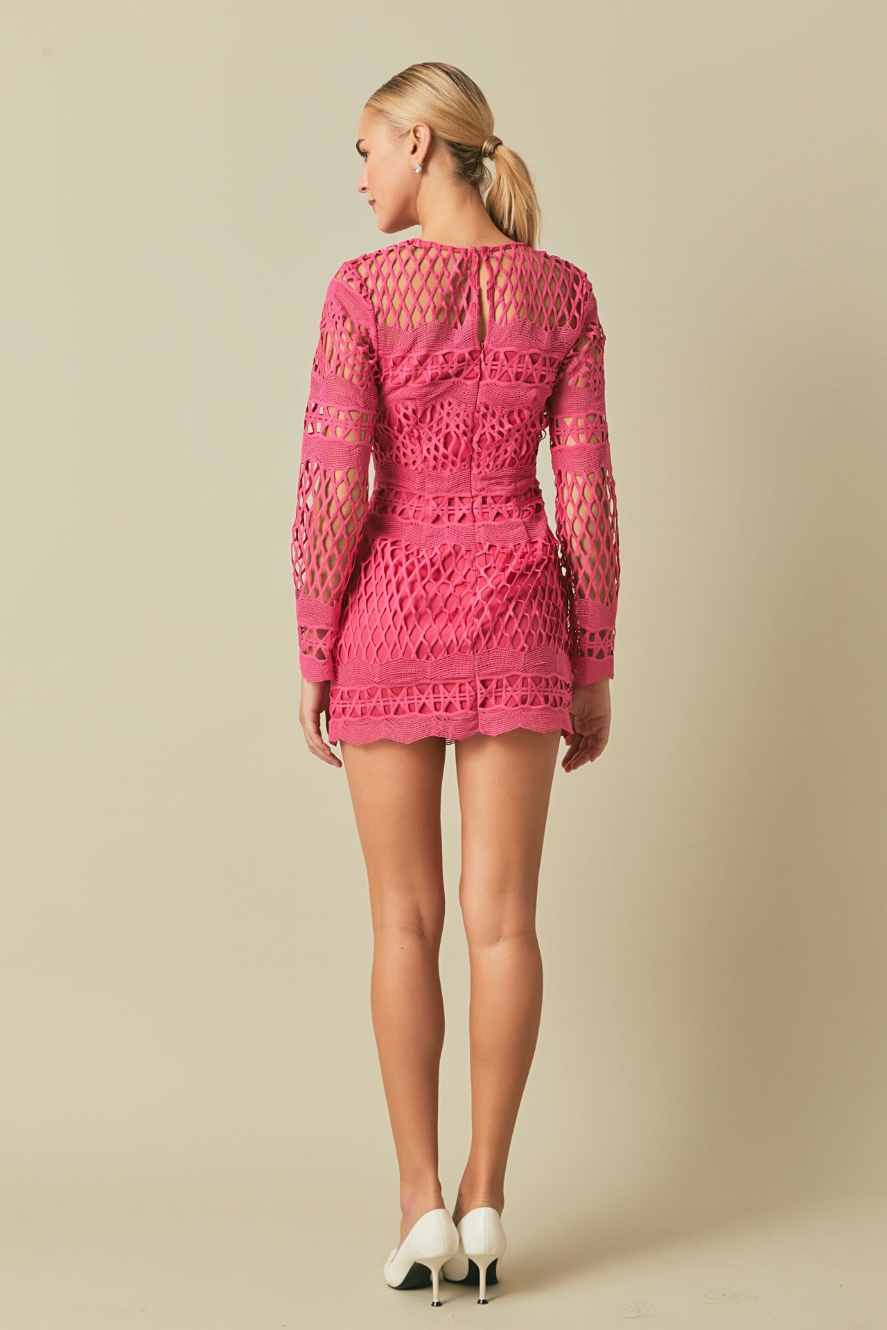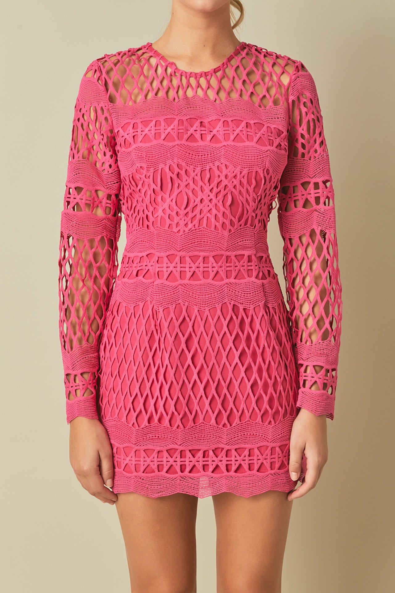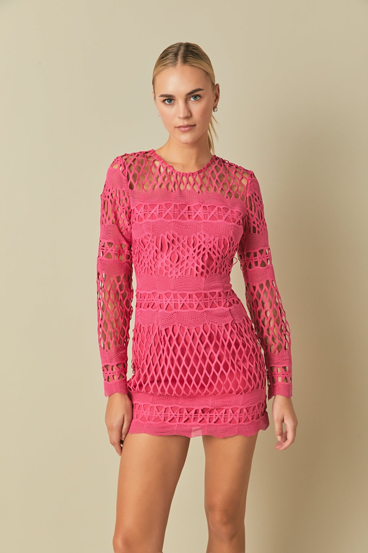 Long Sleeve Crochet Mini Dress