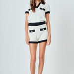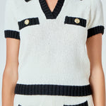 Add a touch of elegance to your wardrobe with our Crochet Knit Collared Top. This must-have piece showcases a beautiful crochet knit design that oozes sophistication and charm. The cropped length gives it a modern twist while the classic collar adds a touch of refinement. The contrast ribbing adds a playful element to the top, making it perfect for both casual and dressy occasions. Made with high-quality materials, this top is not only stylish but also comfortable to wear. Upgrade your fashion game with this unique piece that is sure to turn heads. Order now and stand out from the crowd.