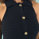 This is our must-have Solene Fitted Collared Knit Sleeveless Mini Dress, the perfect choice for all your weekend adventures! The delicate crochet knit detail brings a boho vibe, while the mini-length silhouette keeps it fresh and stylish. Featuring a sleeveless design and a timeless collar, this dress offers versatility for any occasion. Whether you're enjoying a sunny day or heading out for an evening event, this Crochet Knit Dress is sure to make a statement. Don't miss the chance to add this fashionable, versatile piece to your wardrobe.