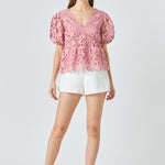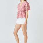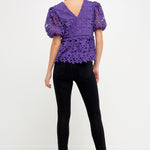 Darling, this top is a must-have for your next cocktail party! With pretty crochet lace and short puff sleeves, this top is perfect for showing some skin. The front and back v-neckline is ultra-flattering, while the lace trim adds a touch of elegance. The center back zipper makes it easy to get in and out of this beauty, while the lined bodice ensures you feel confident all night long.