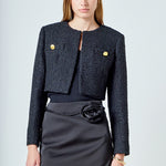 Cropped Buttoned Tweed Jacket