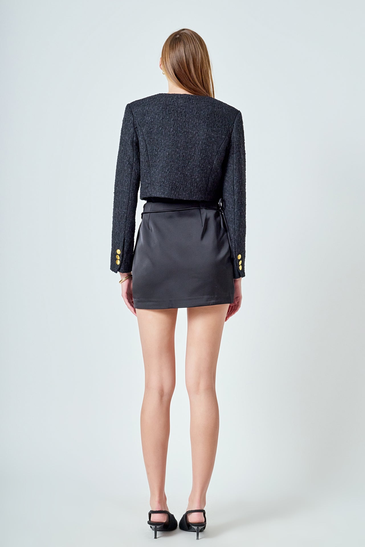 Get ready to elevate your wardrobe with our must-have Cropped Buttoned Tweed Jacket. Made from high-quality tweed fabric this jacket exudes sophistication and style. The cropped length adds a modern twist to the classic tweed design making it perfect for pairing with high-waisted jeans or skirts. The front buttons add a touch of elegance while the front pockets add a functional and chic detail. Shop now and experience the perfect blend of fashion and functionality!
