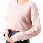 Stay cozy in this stylish cropped long sleeve sweatshirt. With a stylish round neckline and long sleeves, this sweatshirt is perfect for layering or just relaxing at home. The cropped fit is comfortable and easy to move in, making it a great choice for any activity. Whether you're running errands or just spending a day at home, this Cropped Long Sleeve Sweatshirt will keep you comfortable all day long.