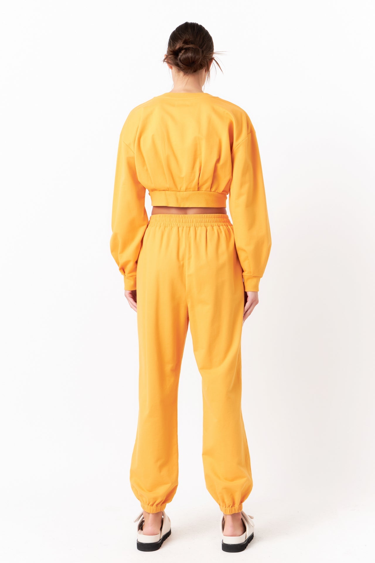 Add a touch of fun and style to your wardrobe with our Cropped Sweatshirt. The round neckline and crop length create a flattering silhouette, while the long sleeves keep you cozy and warm. The pleat detail at the front adds a unique and trendy touch to this must-have top. Perfect for pairing with high-waisted jeans or a skirt, this sweatshirt is versatile for any occasion. Elevate your fashion game with our Cropped Sweatshirt that combines comfort and chic. Don't wait, grab yours now!