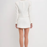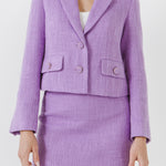 This stunning cropped blazer is perfect for making a statement this season. Made from luxurious tweed fabric, it's flattering and versatile - wear it with the matching skirt for a sophisticated look, or team it with jeans for a more casual vibe.
