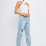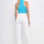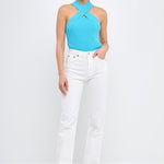 A must-have for all your warm weather style needs. This tank is a key piece for creating endless summer style possibilities. The crossover halter neckline adds a touch of elegance, while the rib knit fabric keeps you comfortable all day long. Whether you're dressing it up or down, this tank is perfect for any summer occasion.