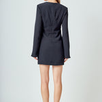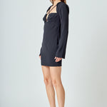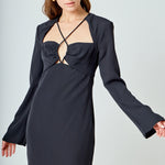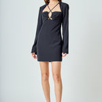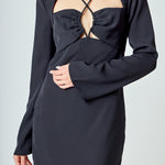 This sexy little number will have you looking chic all night long. With long sleeves and crossover straps, this fitted mini dress is perfect for a night out on the town. Plus, the pad sleeve detailing gives this dress a touch of glamor. An essential for your party wardrobe, this dress will have you looking and feeling your best.