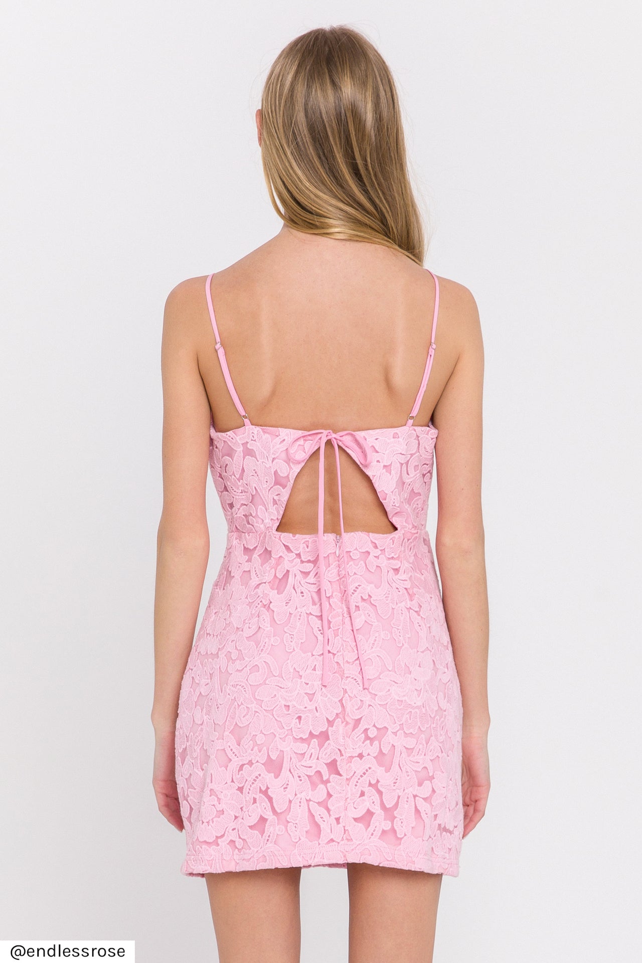 Add some sassy drama to your wardrobe with this Cut-Out Back Mini Dress. Its fitted silhouette shows off your curves while adjustable back straps and tied detailing at back add an edgy element to your look. The dress is fully lined for a comfortable fit. Unique, stylish and versatile, this dress is sure to be a go-to for any occasion. Keywords: mini dress, back straps, tied detail, fitted mini dress.