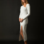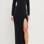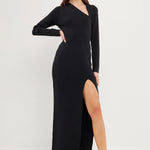 This maxi dress is perfect for showing off your curves. With a simple cut out neckline detail, this ribbed knit maxi dress is figure flattering and perfect for any event. With long sleeves and a slim fit, it will keep you warm all autumn and winter long. Add a touch of glamor to your look with this beautiful cut out maxi dress.