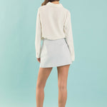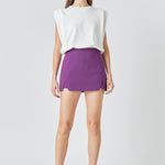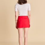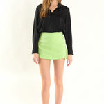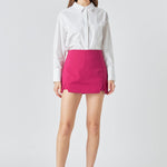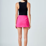 Introducing the High-Waisted Skort, the perfect combination of a skirt and shorts for the ultimate comfort and style. With a skort design, it provides the coverage and ease of shorts while maintaining the feminine look of a skirt. The front cut-outs add a touch of edginess, while the back darts ensure a flattering fit. Designed with a high waist, it gives the appearance of longer legs. Made with high-quality materials, this skort is perfect for any occasion.