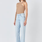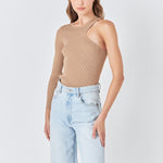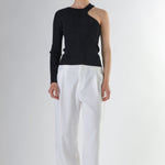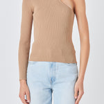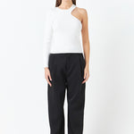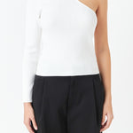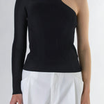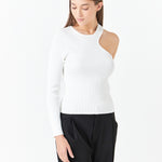 Every girl needs a knit top with cut-outs in her wardrobe. With its one shoulder silhouette and fitted style, this knitted top is perfect for showing off your curves. The round neckline is flattering and timeless. Whether you wear it to work or out on the town, this top is sure to turn heads.