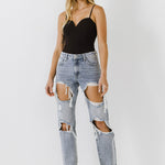 Our Deep V-Neck Bodysuit is a unique mix of style and comfort. The bodysuit features a flattering deep V neckline with adjustable straps, plus a lining for extra comfort. This elegant top is perfect for any occasion and ensures a perfect and secure fit. It's a must-have item in any wardrobe and will help you look chic and stylish wherever you go.