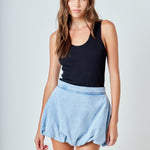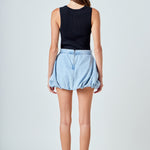 The Zoe Denim Balloon Mini Skirt reinvents casual cool with a sculpted high waist and softly rounded balloon hem. Crafted from premium denim, it balances playful volume with everyday ease, complete with practical side pockets for a utilitarian edge. Pair it with sneakers for effortless daytime style or dress it up with heels. Either way, it's denim with a fashion-forward twist.