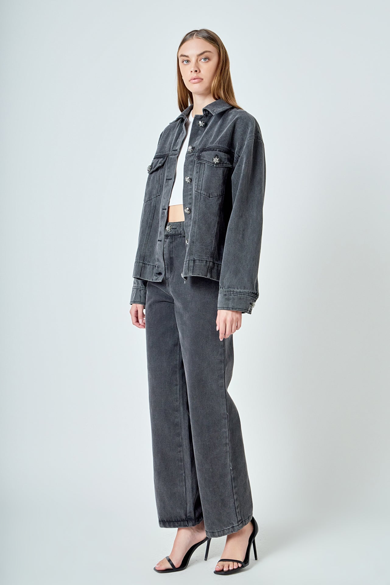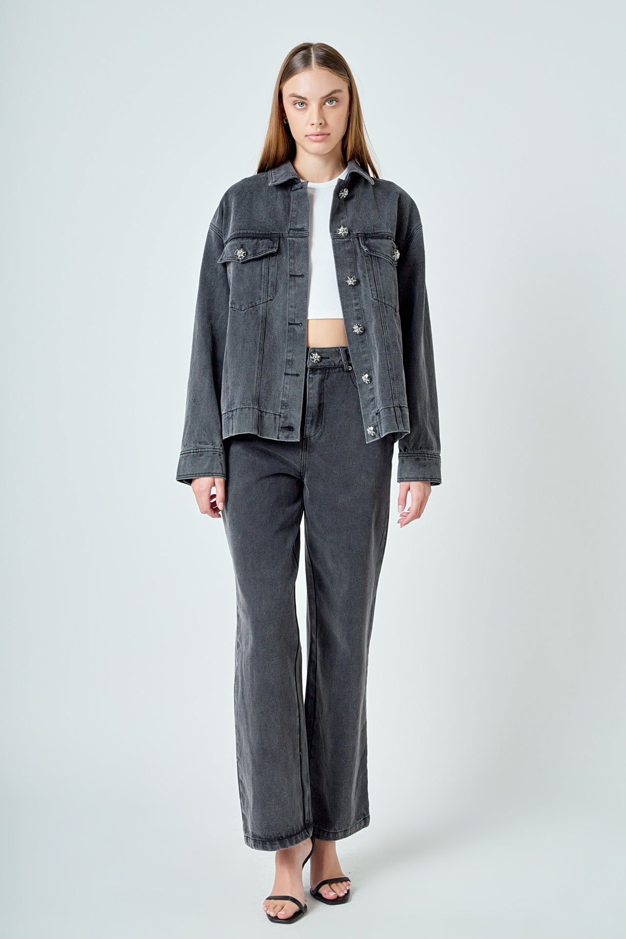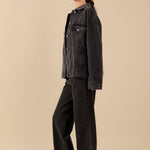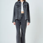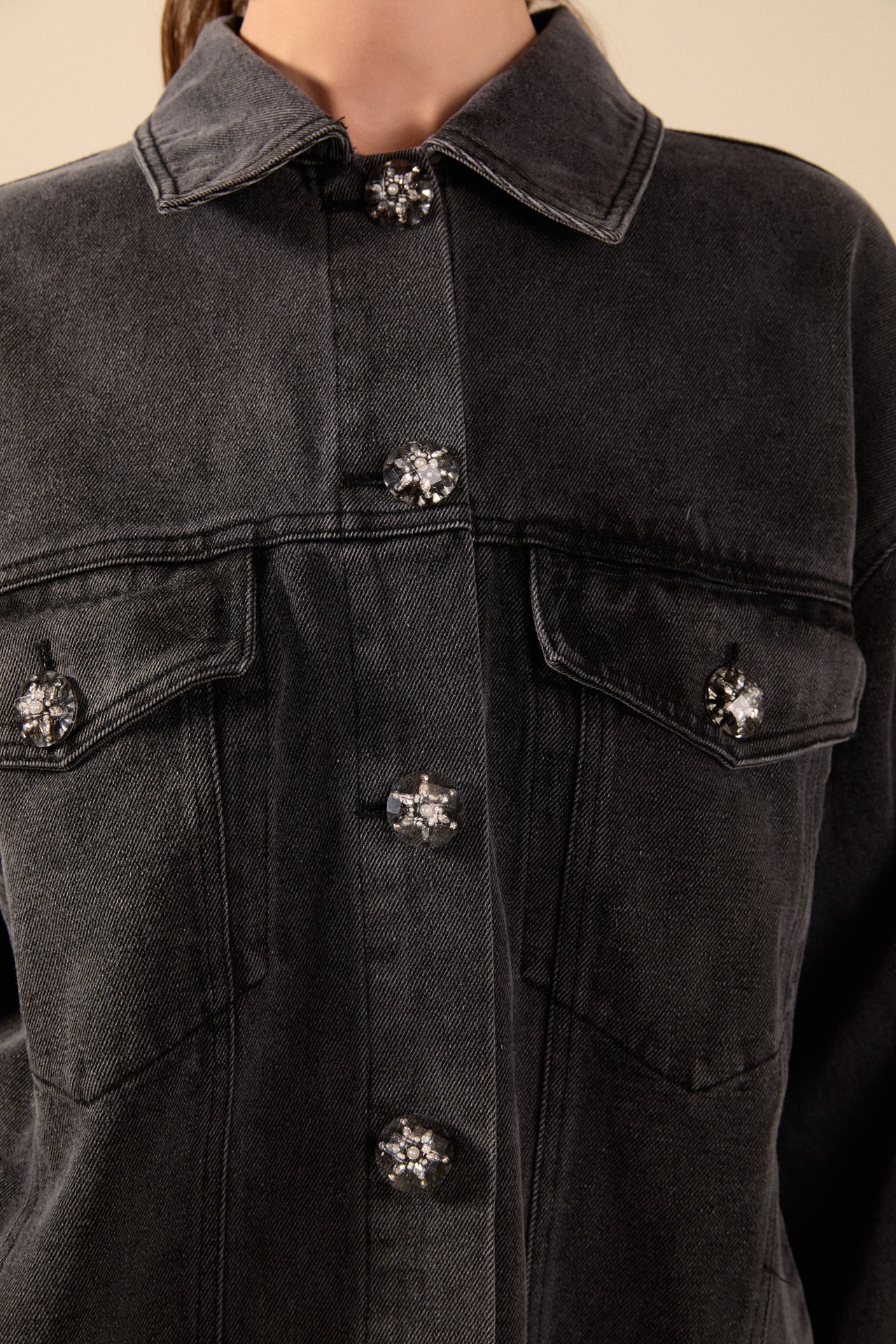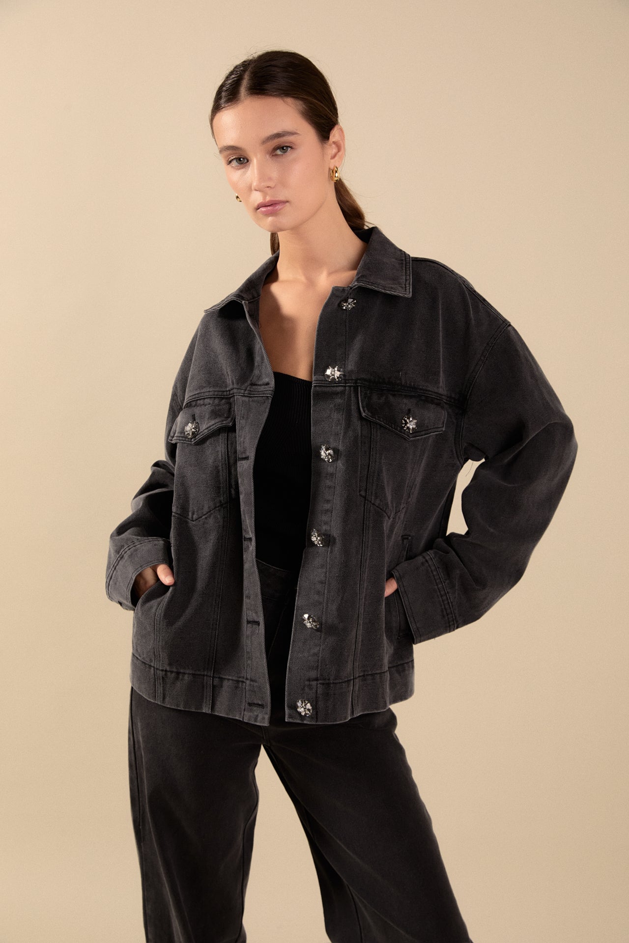 Stay stylish and practical with our Denim Jacket with Pockets. Made with a regular fit and long sleeves, this jacket guarantees comfort for all-day wear. Its collared design adds a touch of sophistication, while the front button closure ensures a secure fit. What sets this jacket apart are its functional pockets, perfect for storing all your essentials. Transition effortlessly from day to night with this versatile piece. Upgrade your wardrobe with our Denim Jacket with Pockets, your new go-to jacket for any occasion.