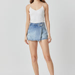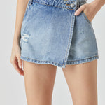 When you want to add a little fun to any outfit, what better choice then a denim skort? With a great mini length, you will look great while you are showing off the amazing wrap style skort. Easy to wear easier to care for.