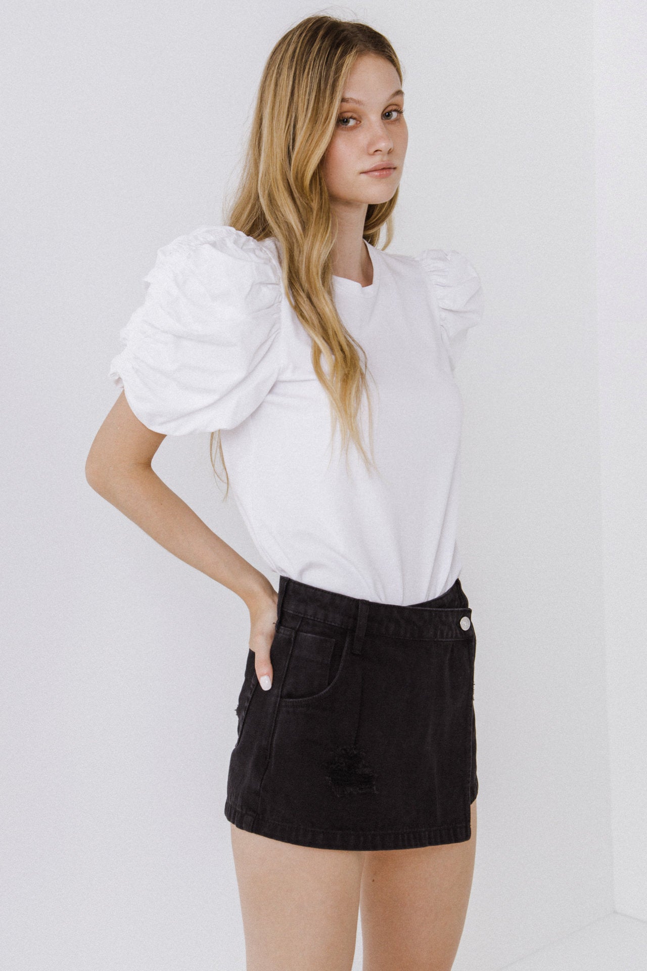WHITE, DENIM: Height 5'9" / Bust 30.5" / Waist 24" / Hips 34.5"