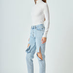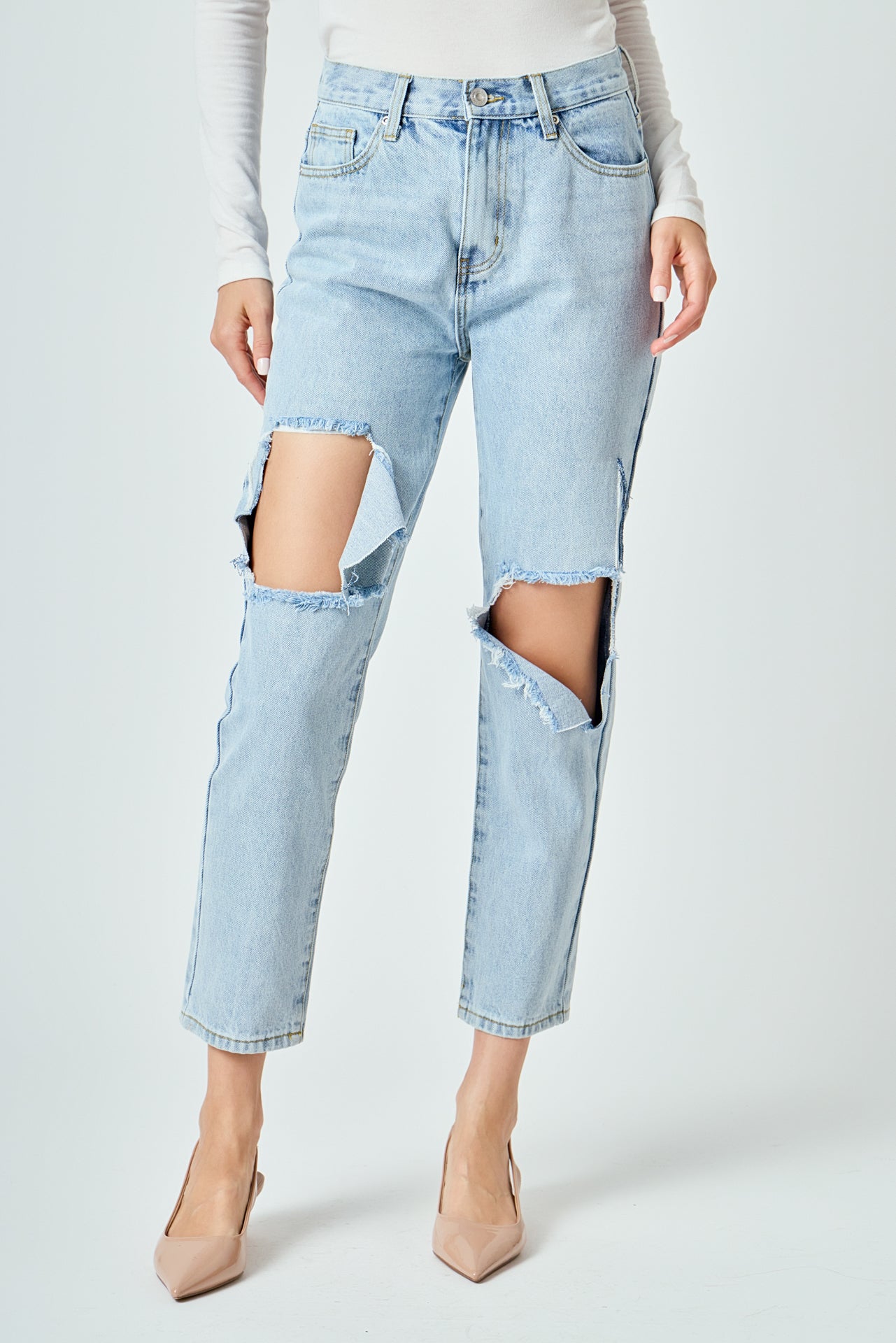 Introducing our trendsetting Destroyed Straight Jeans, a wardrobe staple for every fashion-forward individual. Made with premium quality denim, these pants offer superior comfort and long-lasting durability. The edgy destroyed detailing adds a touch of urban flair, while the classic straight leg silhouette flatters any figure. These versatile jeans are perfect for any occasion, whether it's a casual day out or a night on the town. Upgrade your denim game with our Destroyed Straight Jeans and make a bold statement wherever you go. Rock your unique style and stand out from the crowd. Order now and experience the perfect fusion of fashion and function!