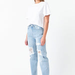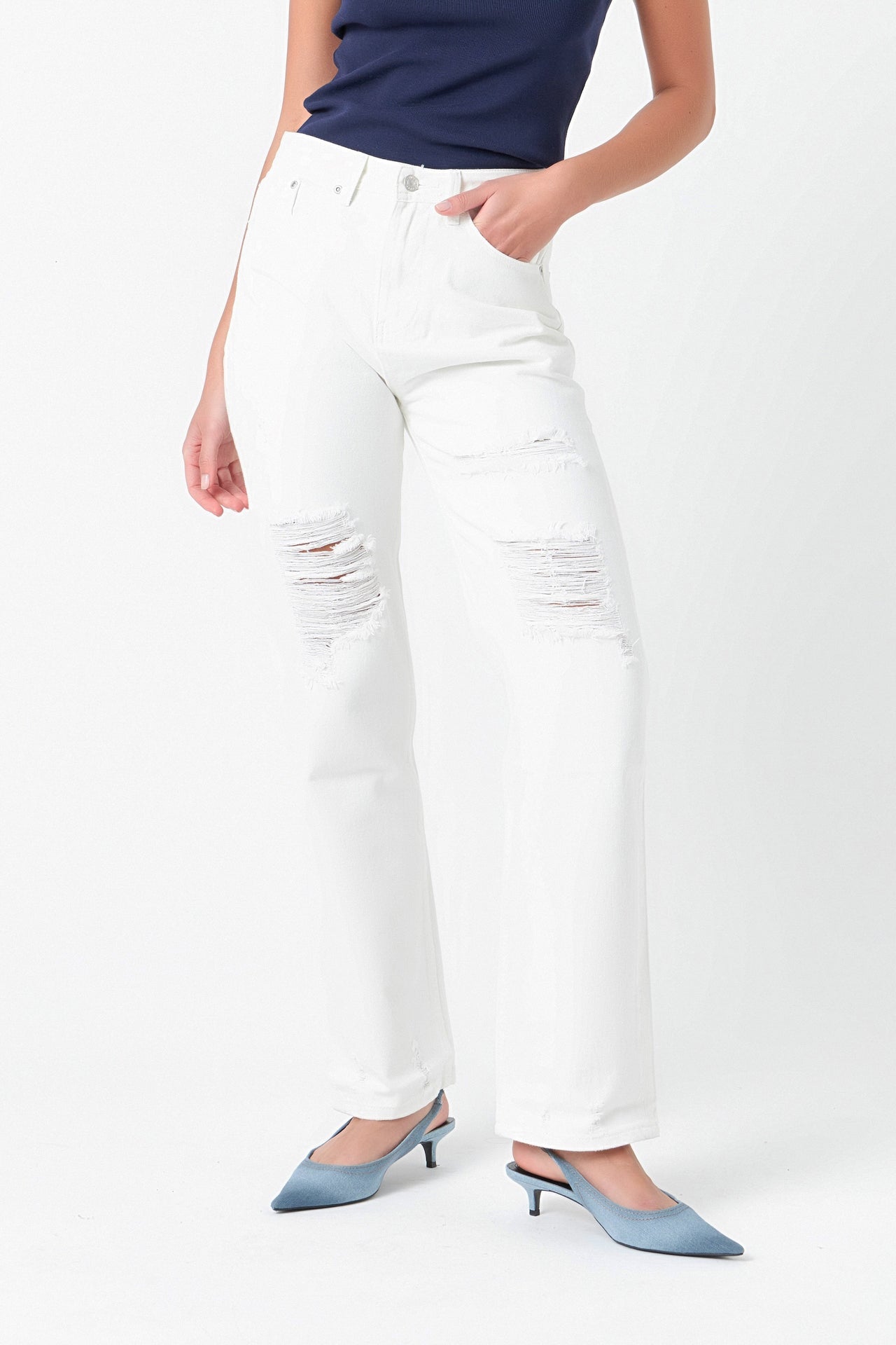 Looking for something unique in your denim selection? These destroyed jeans are just the thing! With fun distressed details and a comfortable fit, they'll become your go-to choice for casual days. The zipper closure and pockets make them practical as well as stylish. Dress them up or down - however you wear them, you'll look amazing.