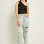 Looking for a pair of jeans that will make you stand out from the crowd? Look no further than our Destroyed Jeans! These jeans feature a high waist and destroyed detailing, making them perfect for fashion-forward ladies. And don't worry even though they look stylish, these jeans are still just as comfortable as your favorite pair of old jeans. So go ahead and rock the Destroyed Jeans look you won't regret it!